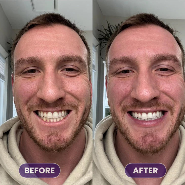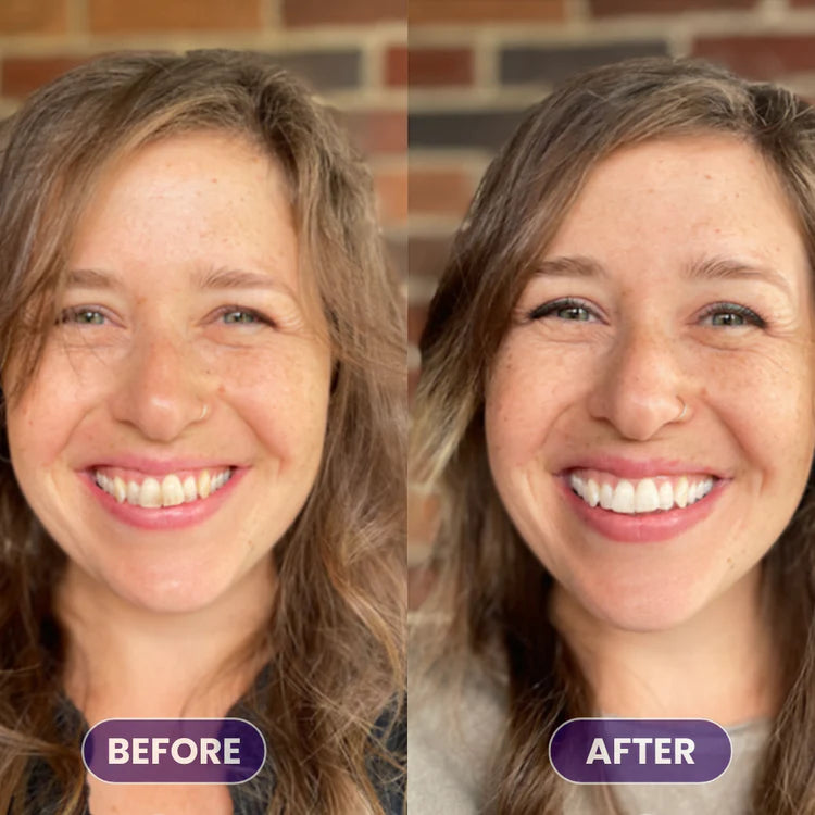 It uses color-correcting purple pigments and advanced whitening ingredients to neutralize yellow tones, remove stains, and brighten your smile instantly.